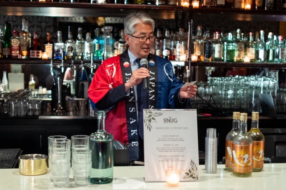 During the event at The Snug in Midtown Sacramento, participants from the California State Legislature, Japanese companies, and community organizations were introduced to Shochu by spirits educator Don Lee, followed by tasting of cocktails from James Beard Award-winning Bar Kumiko founder Julia Momose and Shochu Cocktail Competition winner Kendra Hada, as well as over 20 different types of Shochu, including products from 171-year-old Yatsushika Brewery in Oita Prefecture.