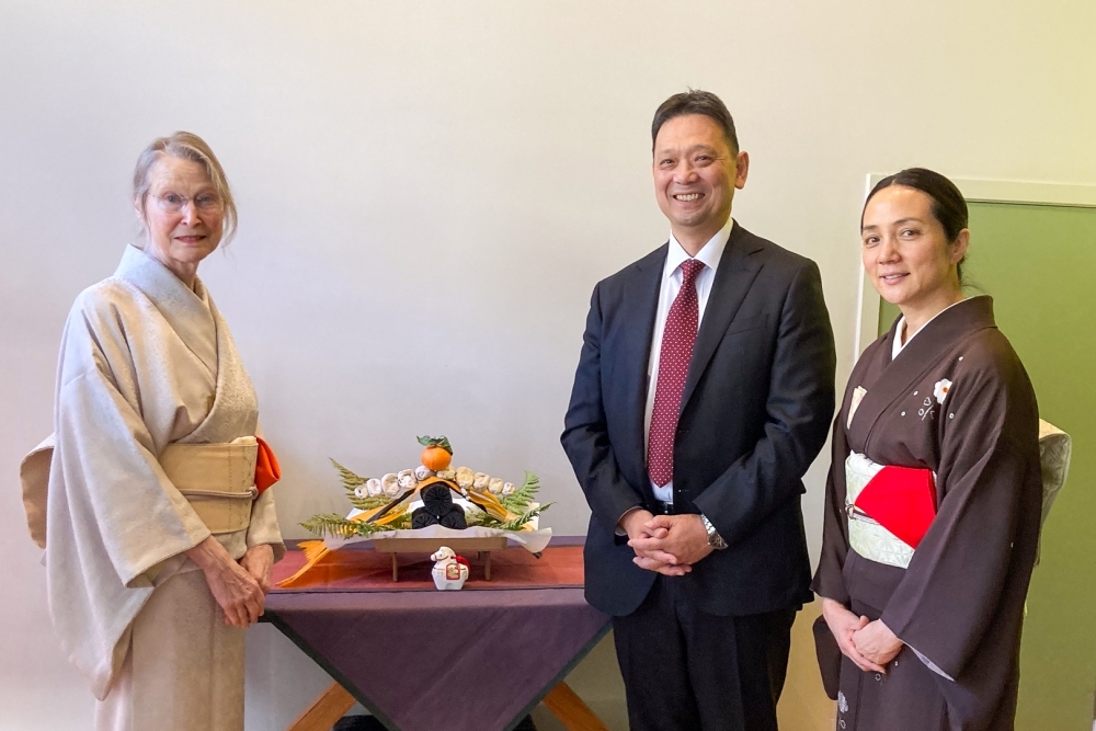 On Sunday, January 11, Urasenke Foundation San Francisco hosted its annual “Hatsudate Chakai” or first tea gathering of the new year, at its tearoom in San Francisco’s North Beach. Consul General Kotaro Otsuki joined the event and presented Urasenke Foundation with the Consul General’s Commendation for its efforts in promoting friendship between Japan and California through its activities with tea and education making the tradition accessible to a wide range of audiences. Urasenke Foundation Director Christy Bartlett accepted the award on behalf of the organization.