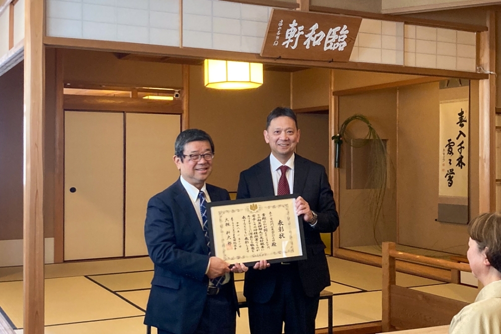 Mr. Seino accepts the Consul General’s Commendation on behalf of Omotesenke Domonkai Northern California Region