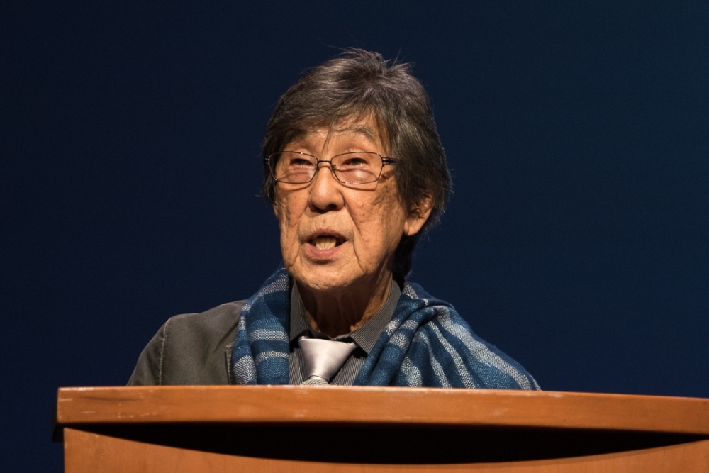 Queen Program Committee Chair Emeritus Benh Nakajo thanks the audience
