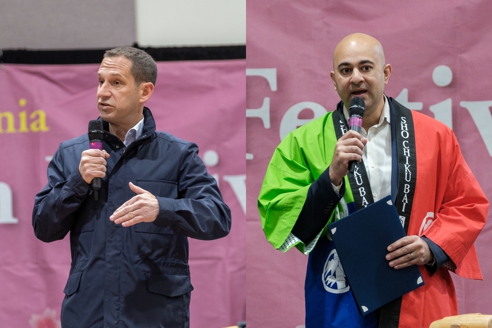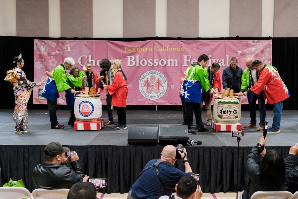 On Saturday and Sunday, April 11 and 12, the first weekend of the 59th Northern California Cherry Blossom Festival was held in San Francisco Japantown. Consul General Kotaro Otsuki spoke at the opening ceremony on April 11, expressing his appreciation for the festival organizers for the longevity and scope of the festival, and encouraging attendees to make the most of this opportunity to celebrate Japanese culture and the Japan-California relationship. Festival Co-Chairs Mr. Matthew Nagatomi and Ms. Yuki Nishimura, San Francisco Mayor Daniel Lurie and District 5 Supervisor Bilal Mahmood; Community Marshalls Roy and PJ Hirabayashi and Mr. Steven Nakajo and other community leaders also spoke in the ceremony. After remarks all speakers participated in a Kagami Biraki ceremony to celebrate the opening of the festival.