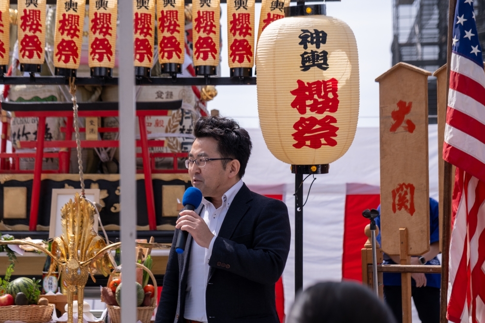 On Saturday, April 18, Deputy Consul General Ishihara attended a purification ceremony for the San Francisco Kanda Mikoshi, which was gifted to the festival by Kanda Myoujin in Tokyo in 2000. This year sees the return of the mikoshi to the parade for the first time since 2019.