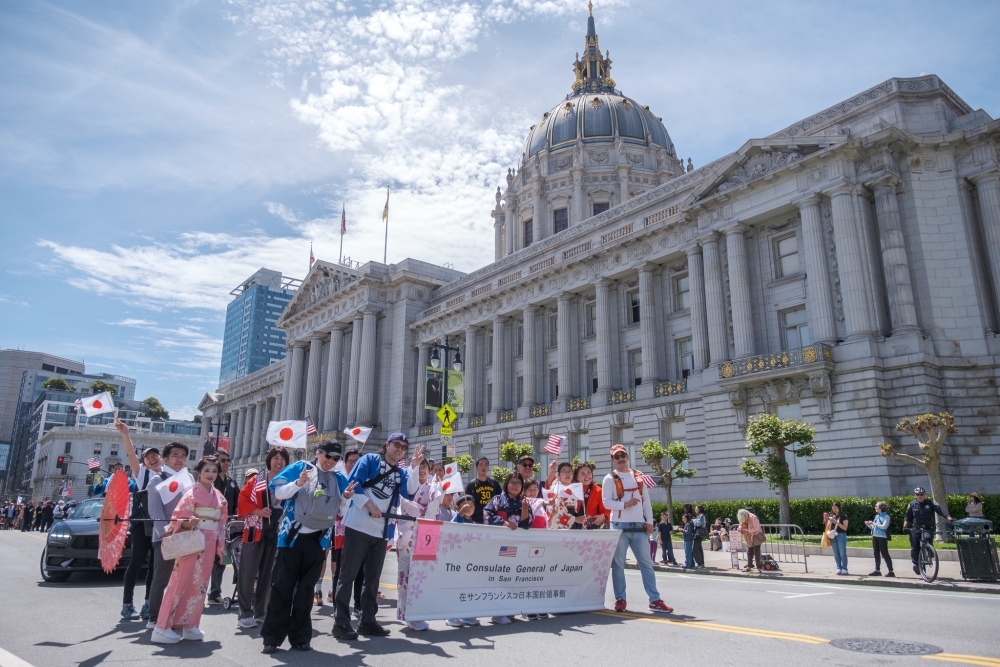 On Sunday, April 19, Consul General Otsuki, and Consulate staff with their families participated in the Grand Parade of the Northern California Cherry Blossom Festival. The Parade is the finale to the Festival and travels between San Francisco’s City Hall and Japantown. Over 50 Japan-related cultural organizations and community representatives participated in this year’s parade.