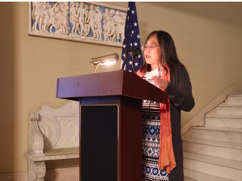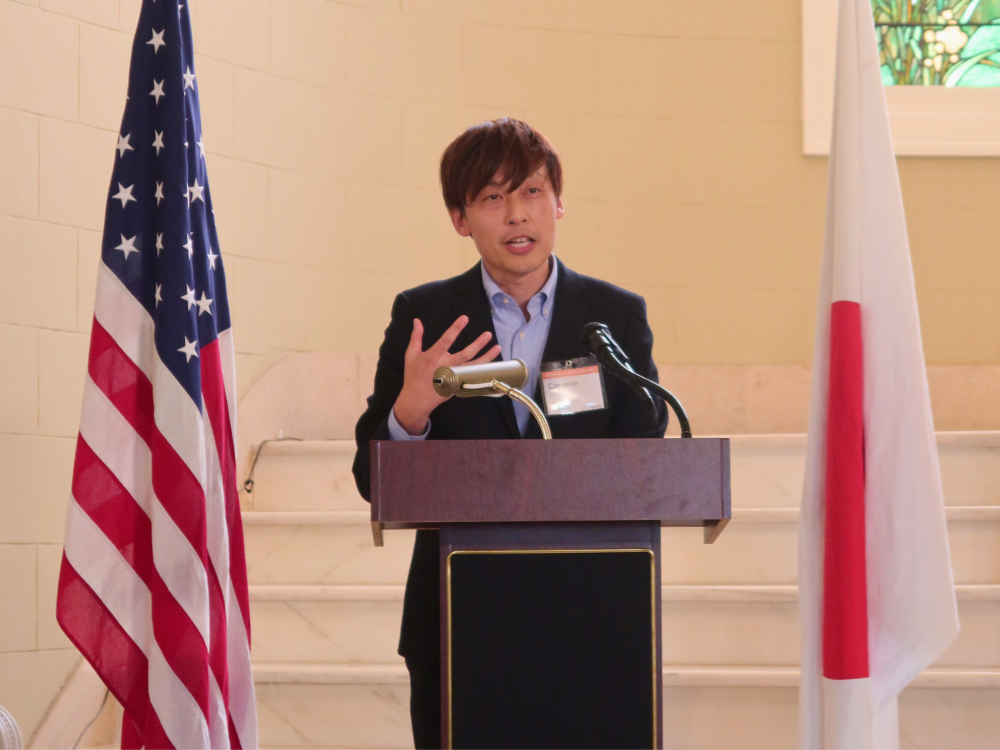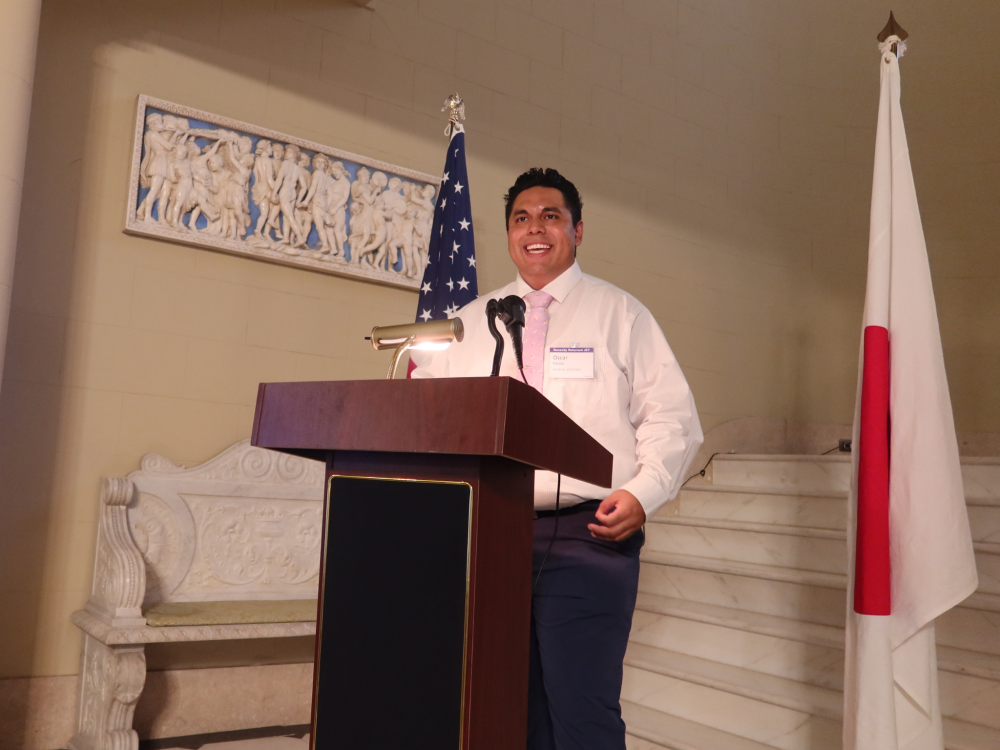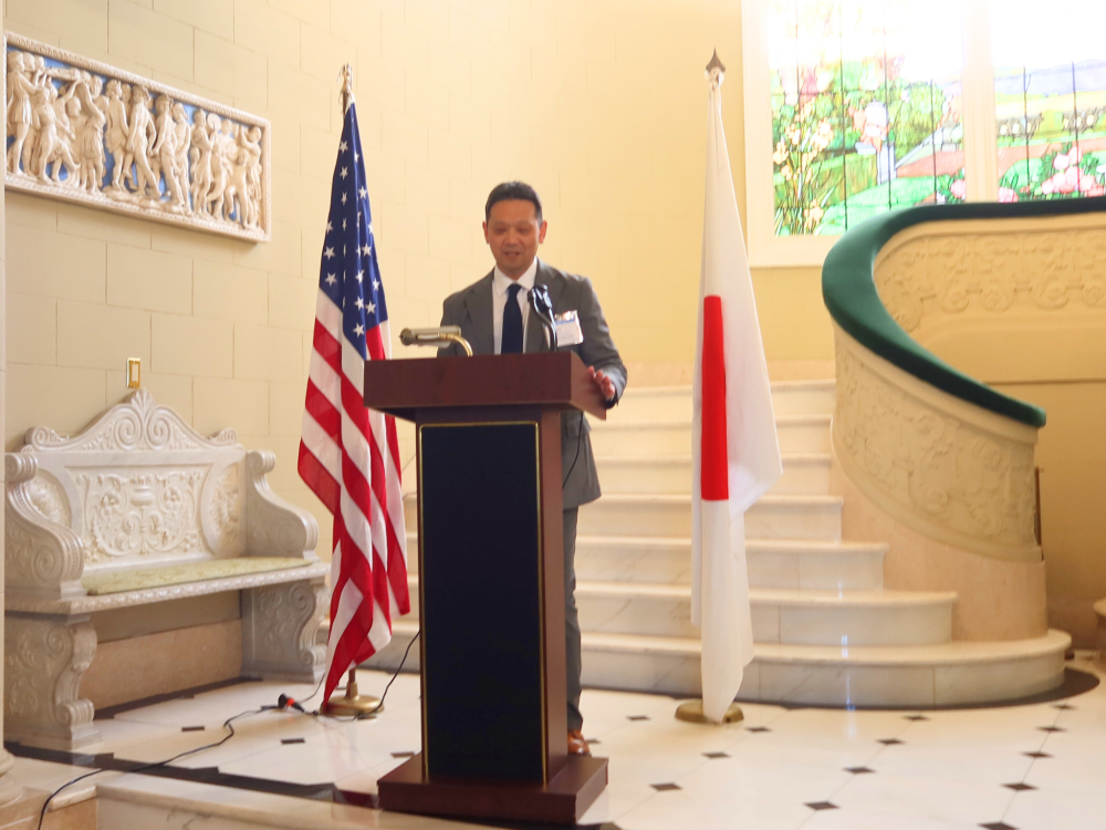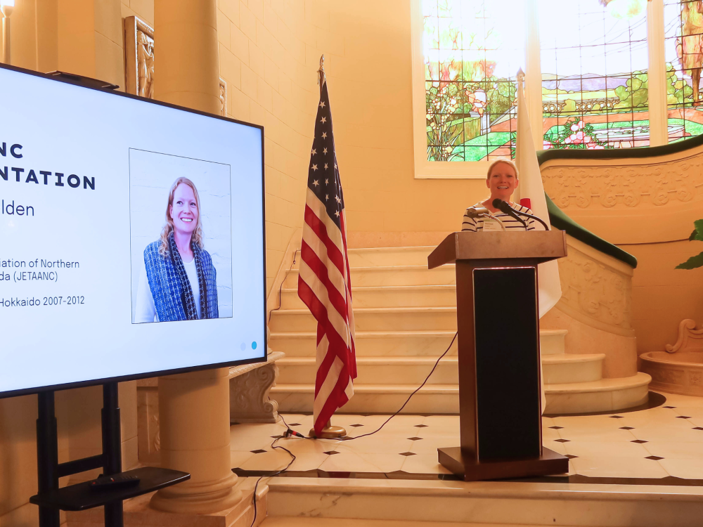 大槻総領事は、冒頭の挨拶でJETプログラムの同窓生全員を歓迎するとともに、帰国者に対し、日本での経験から得た視点とスキルを今後のキャリアや地域社会に活かしてほしいと激励しました。その後、JETAANCの現会長であるメリッサ・ゴールデン氏 (北海道、2007年~2012年) がJETAANCの活動について発表し、今後帰国者も同窓生として草の根レベルの日米交流に貢献していくことへの期待を述べました。また、当地で日本語教師を務めているキャメロン・チエン氏 (新潟、2008年~2013年) がJETプログラムにおける自身の経験及び現在のキャリアへの道について講演しました。式典の後、出席者はグループディスカッションやネットワーキングディナーを通じて、姉妹都市協会や日本町コミュニティに関わり今でも日本とのつながりを保ち続けている「先輩」の同窓生からキャリアに関するアドバイスをもらいました。