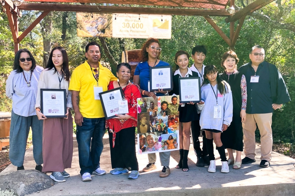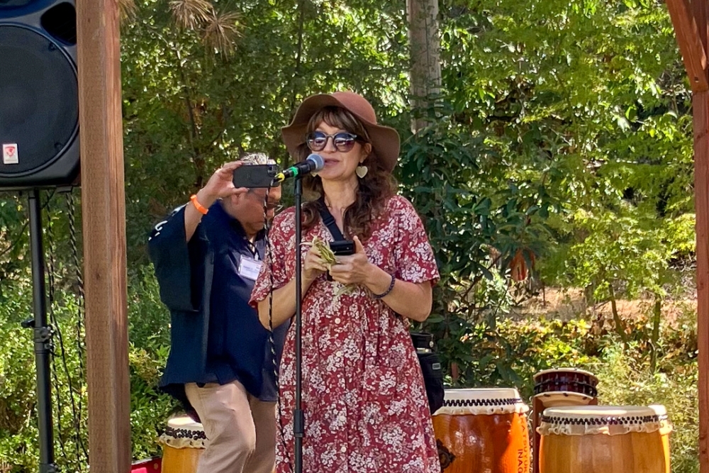 式典では、主催団体である日米ファウンデーションのケンジ・タグマ理事長と若松コロニー跡地を管理するアメリカン・リバー・コンサーバンシー(ARC)のエレナ・ドゥレイシー事務局長がスピーチを行ったほか、日米両国で暮らす若松コロニー入植者の子孫9人が一堂に会し、自らの家族の歴史を紹介しました。