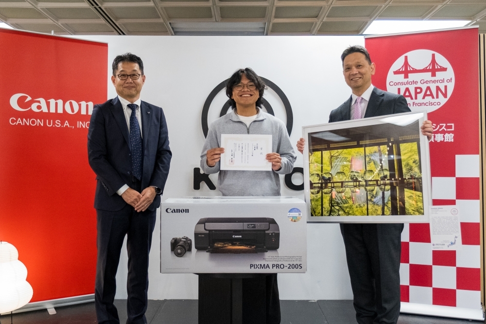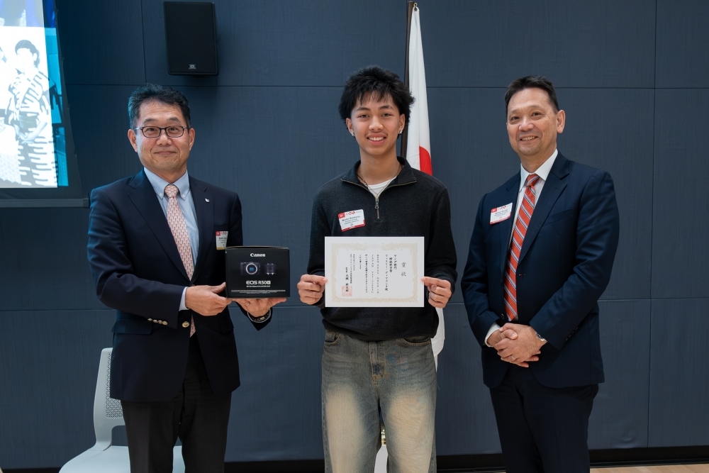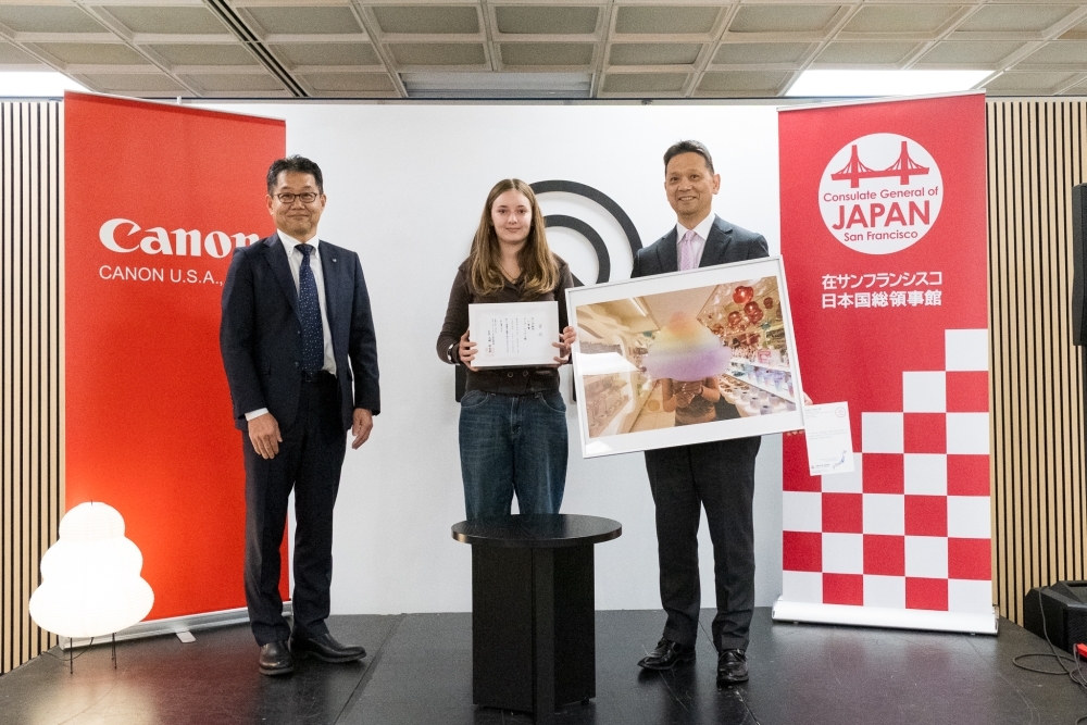 大槻耕太郎総領事から優秀作品の受賞者に表彰状を授与し、本コンテストを協賛したキヤノンUSAの金田謙一シニア・ディレクター/ジェネラル・マネージャーから副賞としてキヤノン社製品が贈呈されました。