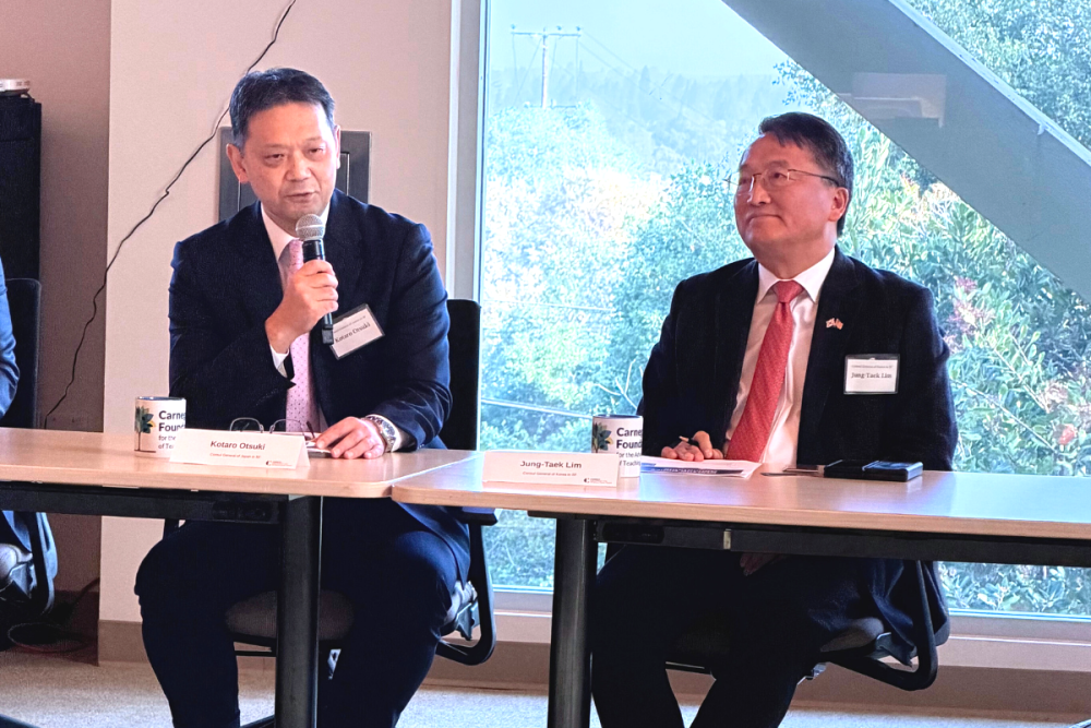 12月9日(火曜日)、在サンフランシスコ日本国総領事館は、在サンフランシスコ大韓民国総領事館及びカーネギー国際平和財団と共同で、「日韓スタートアップ政策対話」を開催しました。本イベントでは、シリコンバレーでスタートアップ政策を担う両国の政策当局が一堂に会し、両国のスタートアップが成長するための支援策について戦略を共有しました。イム・ジョンテク韓国総領事、大槻耕太郎総領事の開催の挨拶に続いて、カーネギー国際平和財団アジアプログラム上級研究員の櫛田健児博士が、韓国・日本・シリコンバレーのスタートアップ・エコシステムをより効果的に連携させるための提案を発表しました。