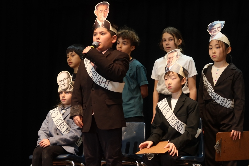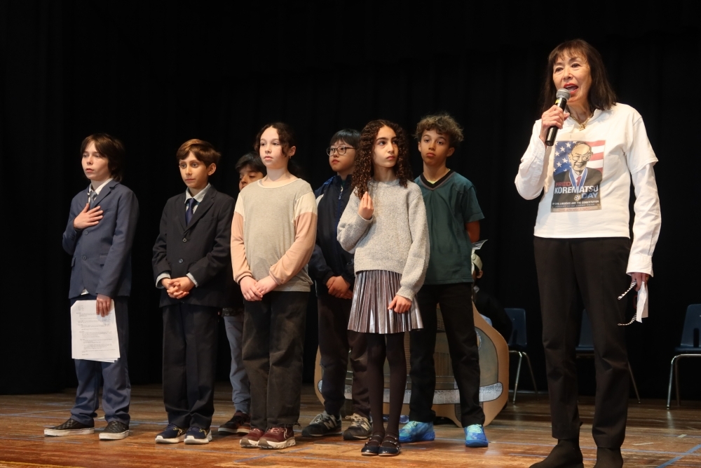 クラレンドン・ジャパニーズ・バイリンガル・バイカルチュラル・プログラム(JBBP)の生徒たちは、第二次世界大戦中、日系アメリカ人の強制収容に反対した公民権運動家、フレッド・コレマツ氏 の生涯を題材にした劇を披露し、歴史と公民権について学びました。その後、コレマツ氏の有罪判決を覆すために弁護団を率いたデール・ミナミ弁護士に、クラス代表がインタビューを行いました。